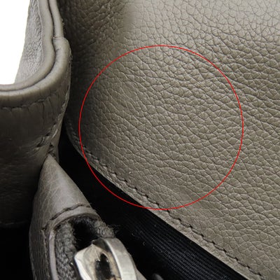 【外側】表面にシワやクセ、僅かな擦れや剥げ、押し跡、コバにヒビや剥げ、金具に擦れやくすみ、塗装剥がれ、ショルダーレザーにクセ【内側】フラップ付け根に僅かな亀裂、レザーに擦れや押し跡、生地やファスナー生地に薄汚れ【におい】保管臭