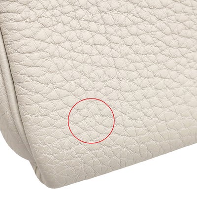 【外側】若干の歪み、表面に微かな点汚れ、フチに微かな擦れ、コバに僅かな黒い汚れ、金具に擦れ、ビスに僅かな青錆【内側】内側生地やフチに微かな擦れ、フラップ根元のコバにヒビ【におい】微かな化粧品のにおい移り【刻印の場所】内側左側面上部【保護シール箇所】ターンロック(一部剥がれあり)、ベルト金具、フラップ、底鋲、カデナ