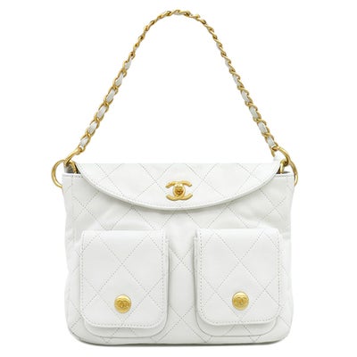 シャネル CHANEL 2WAYバッグ Wポケット ホーボーバッグ キャビアスキン ホワイト マットゴールド金具 ココマーク AS5384B ランダムシリアル 【箱】 【中古】