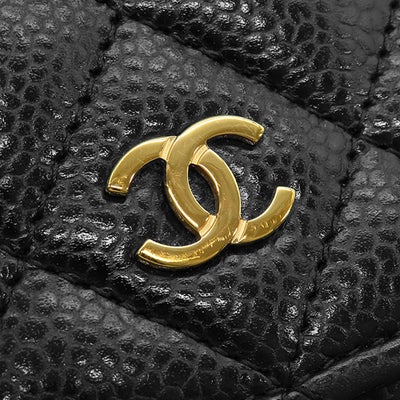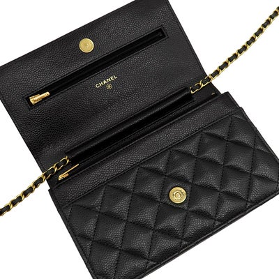 シャネル CHANEL チェーンウォレット マトラッセ チェーンウォレット キャビアスキン ブラック ゴールド金具 ランダムシリアル 【保存袋】 【中古】