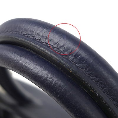 【外側】型崩れやシワ、四つ角やフチに擦れや剥げ、テカリ、ハンドルに擦れやヒビ割れ、ベルトに伸びやヨレ、コバに擦れや剥げ、割れ、金具に小傷、ビスに変色【内側】フラップ根元のコバに割れ、底面に擦れや押し跡【におい】保管臭【刻印箇所】内側左側面マチ部分 ※箱に擦れや剥がれがございます。