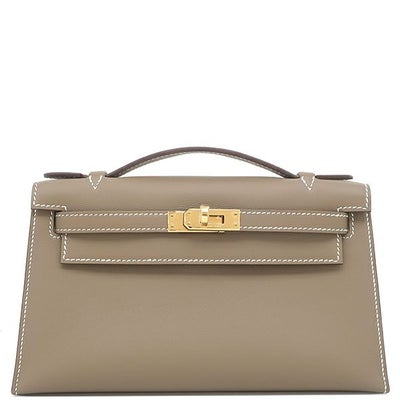 エルメス HERMES ハンドバッグ ポシェットケリー ミニ ヴォースイフト エトゥープ ゴールド金具 新品 未使用 グレージュ ミニバッグ K刻印(2025年製) 【箱】 【中古】