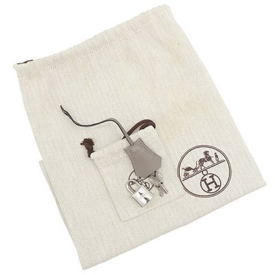 【外側】表面に僅かな擦れ、四つ角やフチに僅かな擦れや剥げ、僅かな黒い汚れ、ハンドルに僅かな擦れ、コバに擦れ、金具に擦れ【内側】フチに擦れや薄汚れ、ヒビ、フラップ根元のコバにヒビ【におい】僅かな素材特有のにおい【刻印の場所】内側左側面マチ部分【保護シール箇所】底鋲(三ヶ所、一部剥がれあり) ※保存袋に汚れがございます。