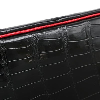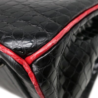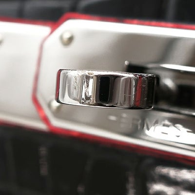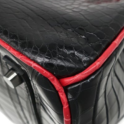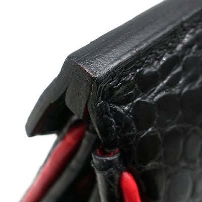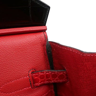エルメス HERMES ハンドバッグ バーキン 35 ポロサス ブラック×ブレイズ シルバー金具 黒 赤 バイカラー クロコ ルテニウム金具 □K刻印 【保存袋】 【中古】