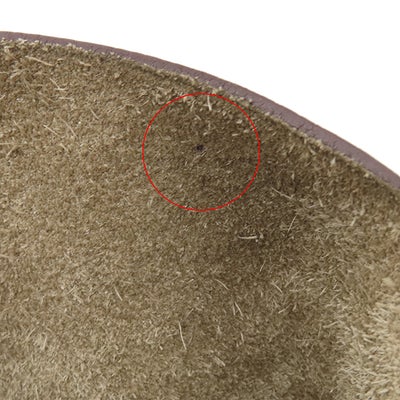 【外側】歪みやシワ、表面に僅かな薄汚れや製造時からと思われる黒点、三つ角に擦れ、金具に小傷【内側】擦れや毛羽立ち、僅かな点汚れ、コバに僅かなヒビ【におい】僅かな素材特有のにおい【刻印の場所】ベルトループ内側