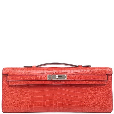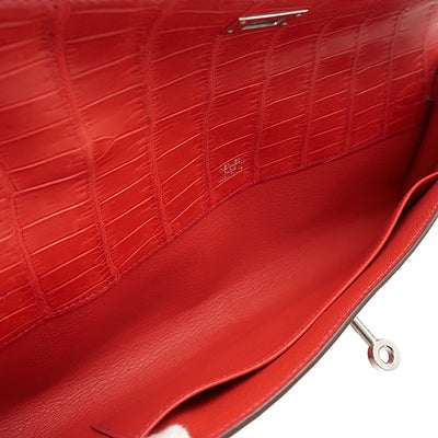 エルメス HERMES ハンドバッグ ケリーカット ポロサスマット ブーケンビリア シルバー金具 クロコ 赤 X刻印 【中古】