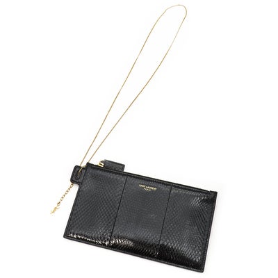 サンローラン SAINT LAURENT ポーチ チェーンポーチ レザー ブラック ゴールド金具 黒 パイソン型押し 669907 【箱】 【中古】