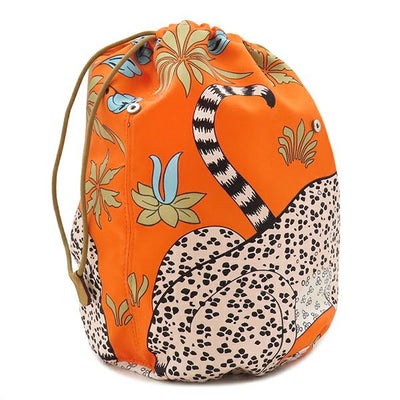 エルメス HERMES ポーチ ミュザルディーヌ ポション シルク オレンジ×マルチカラー 替えバッグ ヒョウ 動物モチーフ X刻印 【箱】 【中古】