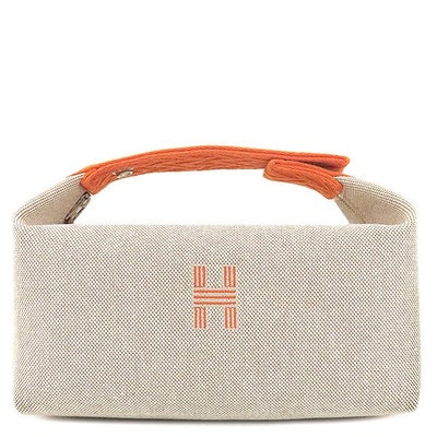 エルメス HERMES ポーチ ブリッド ア ブラック PM トワルアッシュ オレンジ×ナチュラル シルバー金具 トワルH バニティ 【中古】