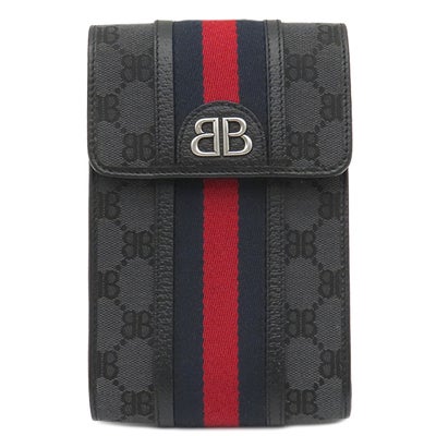 バレンシアガ BALENCIAGA ショルダーバッグ BALENCIAGA × GUCCI ザ ハッカー プロジェクト キャンバス レザー ブラック シルバー金具 グッチコラボ ミニバッグ 黒 680130 【中古】