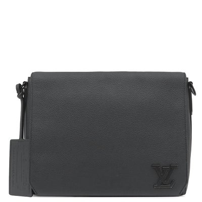 ルイヴィトン LOUIS VUITTON ショルダーバッグ テイクオフ メッセンジャー グレインレザー ブラック ブラック金具 黒 斜め掛け イニシャル入り M57080 RFID 【中古】