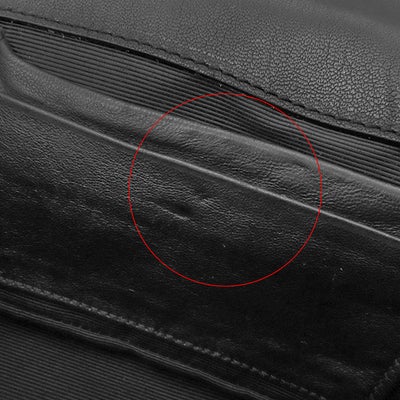 【外側】表面に擦れやシワ、ショルダーレザーにクセや僅かなヒビ、コバにヒビ、金具に小傷【内側】レザーやフチに擦れや薄汚れ、ポケットにヨレや押し跡【におい】保管臭