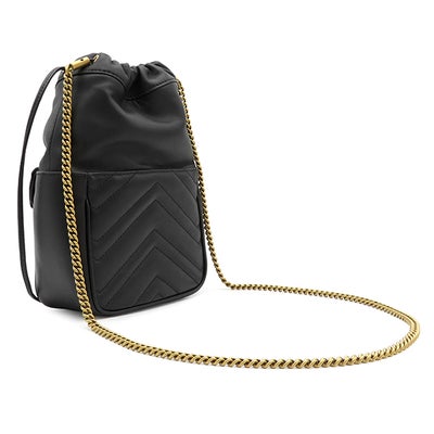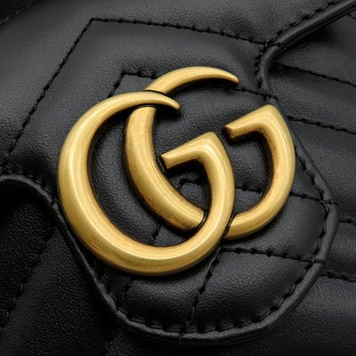 グッチ GUCCI ショルダーバッグ GGマーモント キルティング ミニ バケット レザー シェブロンキルティングレザー ブラック マットゴールド金具 ダブルG 746433 【箱】 【中古】