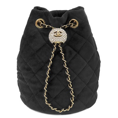 シャネル CHANEL ショルダーバッグ マトラッセ 巾着 ドローストリング ベルベット ブラック ゴールド金具 黒 ココマーク ココボール 30****** 【中古】