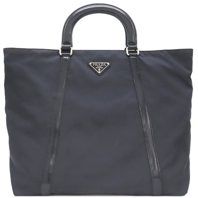 プラダ PRADA 2WAYバッグ テスート 2way トートバッグ ナイロン レザー ネイビー シルバー金具 紺 三角ロゴ ショルダー 1BG285 【中古】