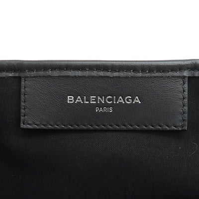 バレンシアガ BALENCIAGA トートバッグ ネイビーカバス キャンバス レザー アイボリーXブラック シルバー金具 白 黒 339933 【中古】