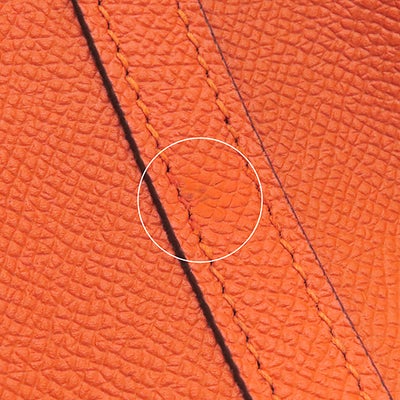 【外側】一角にスレ、製造時からあると思われる点汚れ、縁やコバに少々剥がれ【内側】特になし【におい】保管臭【刻印の場所】内側側面レザー部分 ※箱に僅かな剥がれ有