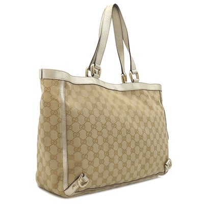 グッチ GUCCI トートバッグ アビー GGキャンバス レザー ベージュ×ゴールド ゴールド金具 ハンドバッグ 141472 【中古】