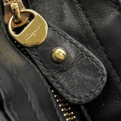 サルヴァトーレ・フェラガモ Salvatore Ferragamo トートバッグ ガンチーニ レオパード ナイロン レザー ブラック×マルチカラー ゴールド金具 ヒョウ柄 GU-21E187 【保存袋】 【中古】