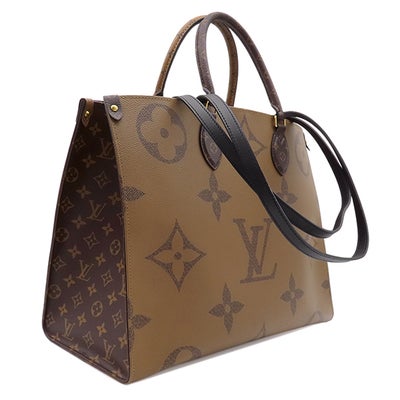 ルイヴィトン LOUIS VUITTON トートバッグ オンザゴー GM モノグラムキャンバス モノグラムリバースキャンバス モノグラム ゴールド金具 肩掛け 茶 M45320 RFID 【中古】