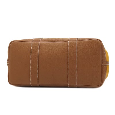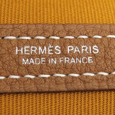 エルメス HERMES トートバッグ ガーデンパーティーPM トワルオフィシエ ネゴンダ サフラン×ゴールド シルバー金具 茶 C刻印 【保存袋】 【中古】