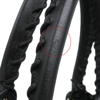 【外側】ラフィア生地に少々毛羽立ち、レザー部分に線スレと小傷、ミラー紐部分に剥がれ【内側】レザー部分に線スレと小傷【におい】僅かな素材臭