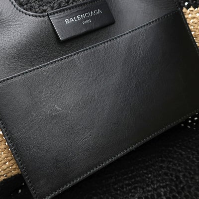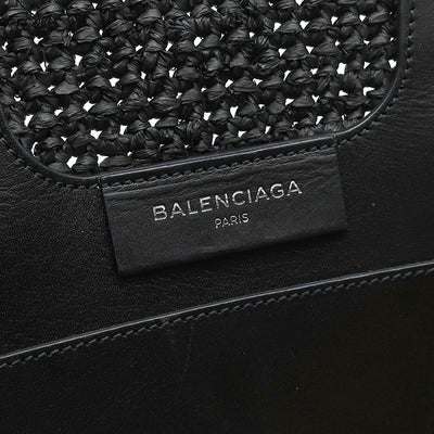 バレンシアガ BALENCIAGA トートバッグ パニエ XS ラフィア カーフ ブラック×ベージュ ガンメタル金具 カゴハンドバッグ 466498 【保存袋】 【中古】