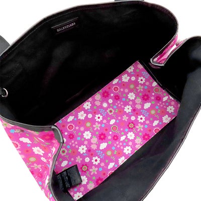バレンシアガ BALENCIAGA トートバッグ ネイビーカバス S キャンバス レザー ピンク×ブラック シルバー金具 黒 花柄 339933 【保存袋】 【中古】