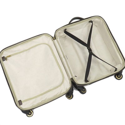 【外側】表面生地やレザー、下部ブラック部分に僅かな擦れや薄汚れ、キャスター周りに擦れや小傷、金具に小傷【内側】薄汚れ、ゴムバンドに毛羽立ちと薄汚れ【におい】特になし