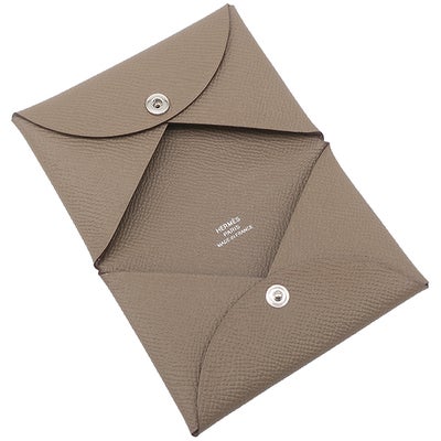 エルメス HERMES カードケース カルヴィ ヴォーエプソン エトゥープ シルバー金具 新品 未使用 グレージュ W刻印(2024年製) 【箱】 【中古】