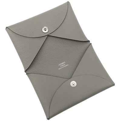 エルメス HERMES カードケース カルヴィ エバーカラー グリメイヤー シルバー金具 グレー B刻印(2023年製) 【箱】 【中古】