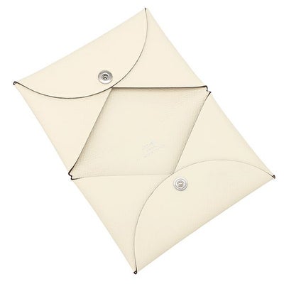 エルメス HERMES カードケース カルヴィ ヴォーエプソン ナタ シルバー金具 アイボリー 二つ折り Z刻印 【箱】 【中古】