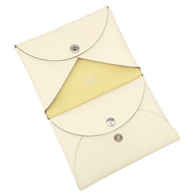 エルメス HERMES カードケース カルヴィ デュオ ヴェルソ ヴォーエプソン ナタ×ジョーヌプッサン シルバー金具 バイカラー U刻印 【箱】 【中古】