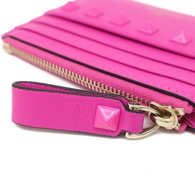 ヴァレンティノ VALENTINO カードケース ロックスタッズ カードケース レザー ピンク ゴールド金具 フラグメントケース コインケース 4W2P0T35ZKZ 【箱】 【中古】