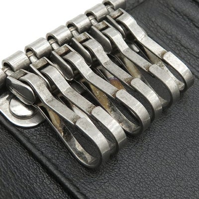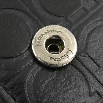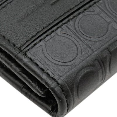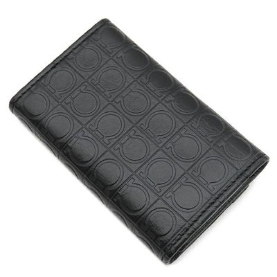 サルヴァトーレ・フェラガモ Salvatore Ferragamo キーケース ガンチーニ 6本 6連 レザー ブラック シルバー金具 黒 鍵入れ キーリング フラップ式 型押し 【箱】 【中古】