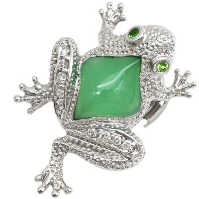 カルセドニー ダイヤ ガーネット カエルモチーフ ピンブローチ