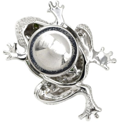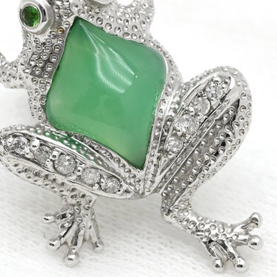 ブローチ カルセドニー ダイヤ ガーネット カエルモチーフ ピンブローチ ホワイトゴールド 緑 グリーン 蛙 かえる グリーングロシュラーガーネット 【中古】