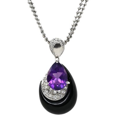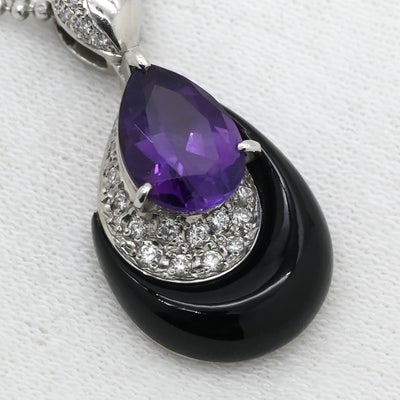ショウ ヤマガタ SHOW YAMAGATA ネックレス アメジスト オニキス ダイヤ パープル ブラック ホワイトゴールド プラチナシルバー イエローゴールド Au750 パヴェ しずく ペアシェイプ 【中古】