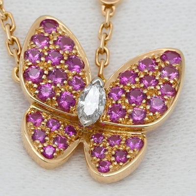 ヴァンクリーフアーペル Van Cleef & Arpels ネックレス ドゥ パピヨン ペンダント ピンクXローズゴールド ピンクゴールド 18K ピンクサファイア ダイヤモンド VCARO3M200 【修理証明書】 【中古】