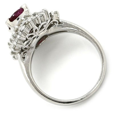 リング 指輪 ルビー ダイヤリング プラチナシルバー レッド 赤 プラチナム ヘイローデザイン 9.5号 【中古】