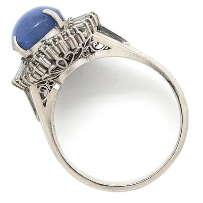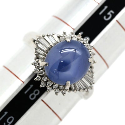 リング 指輪 スターサファイア ダイヤリング プラチナシルバー 青 17号 【中古】