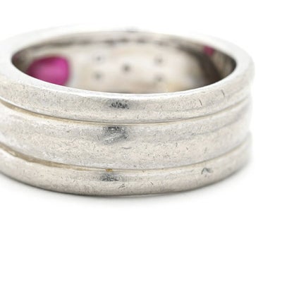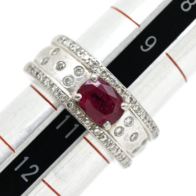 リング 指輪 ルビー ダイヤ リング レッド×プラチナシルバー 赤 プラチナム マット加工 つや消し 天然石 11号 【中古】