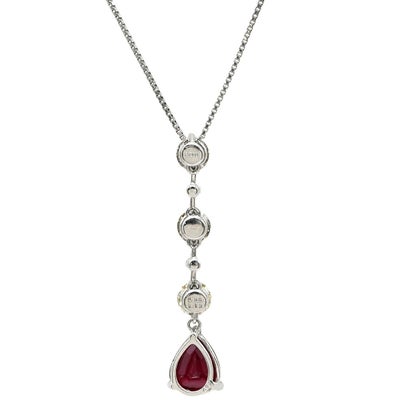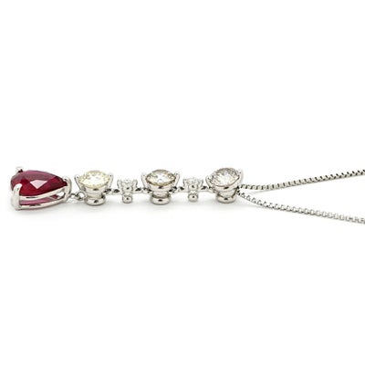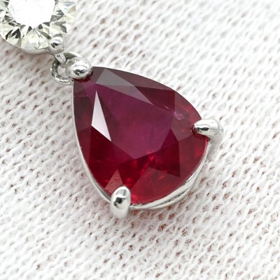 ネックレス ダイヤ ペンダント レッド×プラチナシルバー Pt900 プラチナム 赤 ルビー しずく型 ドロップ ラインストーン ベネチアンチェーン 【中古】