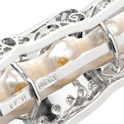 アクセサリー 7Pパール 0.34ctダイヤ 帯どめ パールホワイト×プラチナシルバー Pt900 帯留め 7粒 7連 真珠 あこや アコヤ 珠 【中古】
