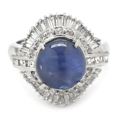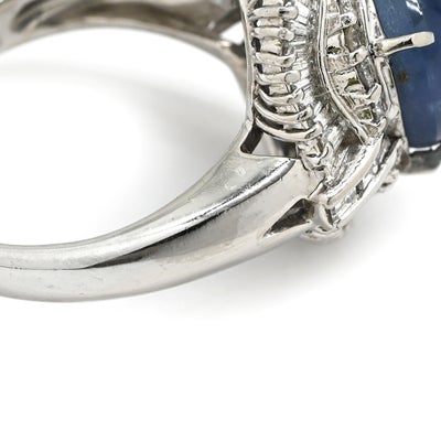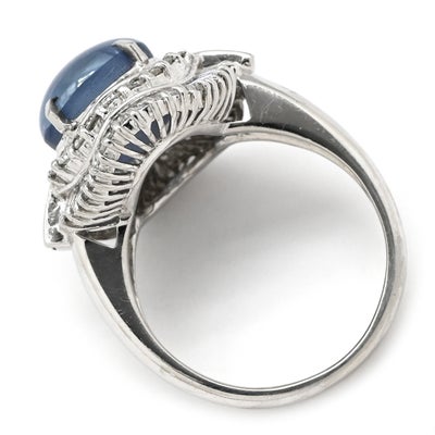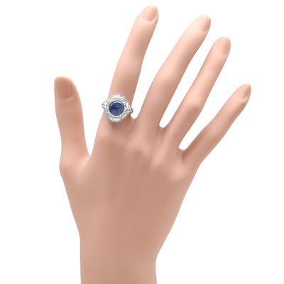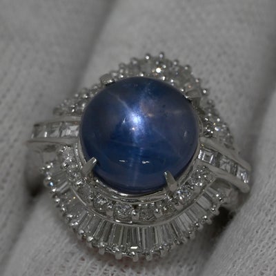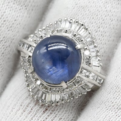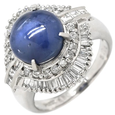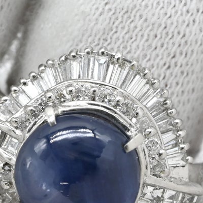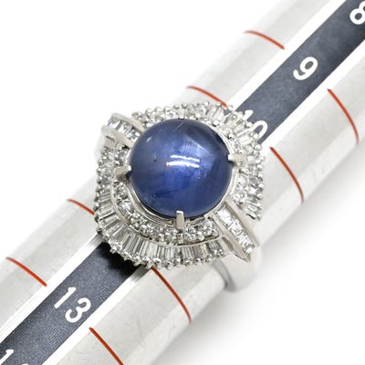 リング 指輪 スターサファイア 6.5ct ダイヤ 1.19ct ブループラチナシルバー 青 Pt900 オーバルカボションカット 天然石 11号 【中古】