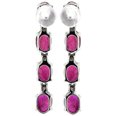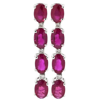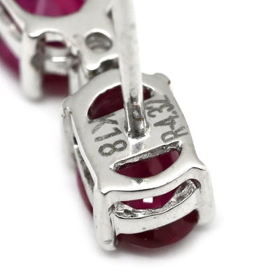 ピアス ルビー 4.32ct ダイヤ レッド×ホワイトゴールド ビルマ産 赤 18K 750WG オーバルミックスカット ドロップ 4連 4石 スイング 3Pダイヤ 【中古】