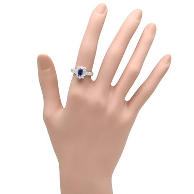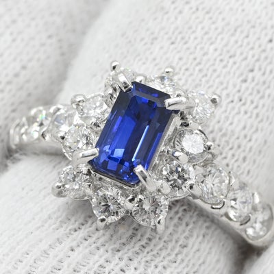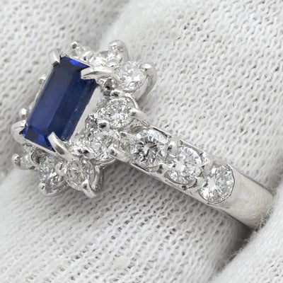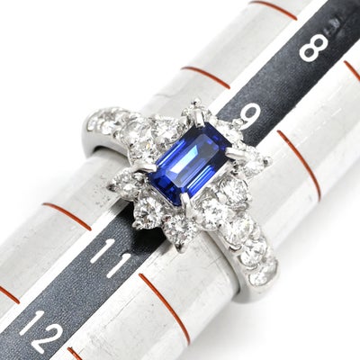 リング 指輪 ブルーサファイア 0.97ct ダイヤ 0.94ct ブルー×プラチシルバー 青 Pt900 プラチナ ステップカット 10号 【中古】