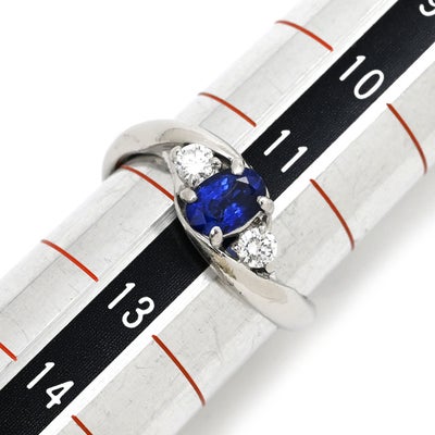 リング 指輪 サファイア 0.70ct ダイヤ ブルー×プラチナシルバー 青 Pt900 プラチナ オーバルミックスカット 12号 【中古】