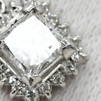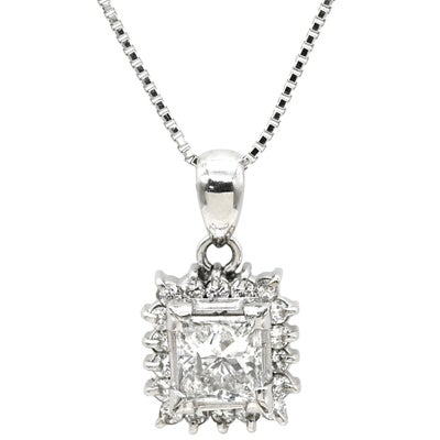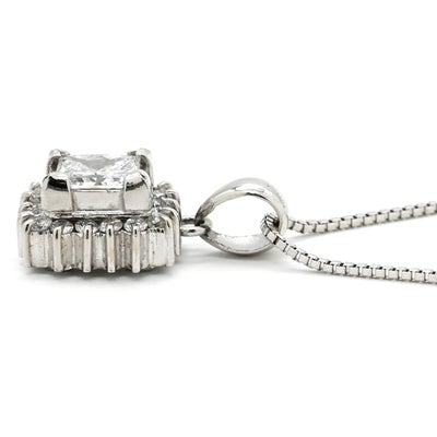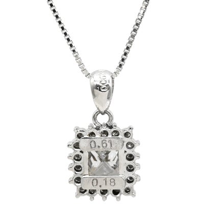 ネックレス ダイヤ 0.61ct ペンダント プラチナシルバー×ホワイトゴールド Pt 18KWG スクエア プリンセスカット メレダイヤ 【中古】