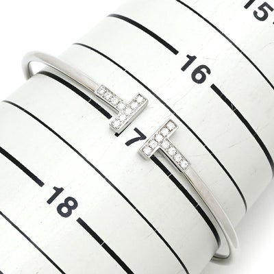 ティファニー Tiffany & Co ブレスレット Tワイヤー ホワイトゴールド×シルバー T&Co. Au750 18K バングル T字型 ダイヤ 【中古】